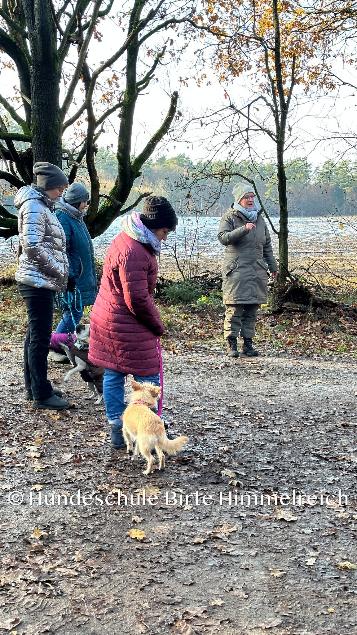 In der Fortgeschrittenengruppe haben wir an der Orientierung ohne Leine gearbeitet und die Hundepfeife eingesetzt. Die Hunde liefen sicher an der Gruppe vorbei, durch sie hindurch und wurden zuverlässig ins Sitz oder Platz gepfiffen.